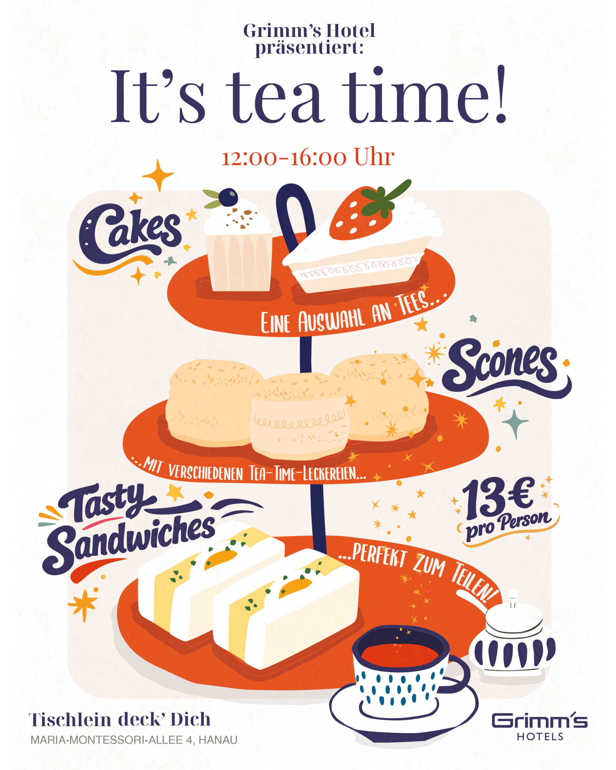Genussvolle Auszeit: süß & herzhaft – Tee, Sandwiches, Scones & feine Küchlein. Von 12:00 bis 16:00 Uhr | Preis: 13 € pro Person